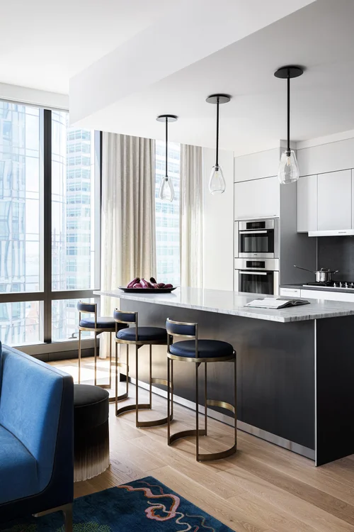 This project was a true testament to the power of joyful collaboration. The clients, a happy couple who had just become empty nesters after marrying off their children, were looking for a pied-a-terre that would serve as a peaceful retreat in the heart of Tribeca. Since both of their newlywed children lived nearby, they wanted a cozy space where they could all come together, visit and unwind.